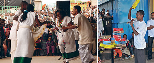 Ein Busbahnhof in der Provinzstadt Nazret, 90 Kilometer von Äthiopiens Hauptstadt Addis Abeba entfernt. Rund 500 Menschen haben sich hier auf einem Platz versammelt, wo eine Tanzgruppe traditionelle Tänze aufführt. Ein dünnes Seil hält die dicht gedrängte Menge von der improvisierten Bühne zurück. Die Stimmung ist fröhlich aufgeheizt wie auf einem Jahrmarkt: Der lokale Jugendclub führt eine „Kondom-Show“ auf.