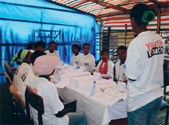 Hinter den TänzerInnen stapeln sich Familienpackungen von Kondomen. Als die Musik verstummt, halten zwei Jugendliche aus dem Youth-to-Youth-Club eine Packung nach der anderen hoch. Der junge Mann und die junge Frau rufen in die Menge: „Bananengeschmack! Kaffeegeschmack! Extra sensitiv! Gerippt!“ Die Leute johlen. Es folgt ein Quiz: Fünf zufällig ausgewählte Jugendliche stellen sich Fragen zu Sexualität und AIDS. Eine junge Frau im traditionellen, islamischen Gewand ist dabei, das Kopftuch schließt das Gesicht streng ein. Sie beantwortet einwandfrei, auf welche Arten AIDS übertragen wird, und gewinnt eine 100er-Packung Kondome. Der Rest der Kondome wird am Ende in die Menge geworfen. Die Menschen balgen sich darum wie um Süßigkeiten.
