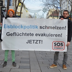 Protestaktion gegen Politik der eisigen Kälte gegenüber Geflüchteten, die in Elendslagern ausharren müssen!